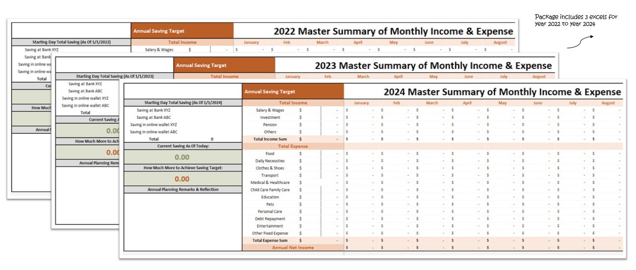 Yearly Monthly Family Budget Planner Excel Template Personal Etsy